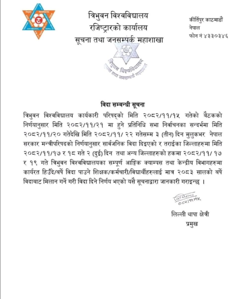 Welcome to the Central Department of Public Health. This is the only Central Department under the Institute of Medicine that was established in Bhadra 2075. The Department, based in Maharajgunj, Kathmandu, hosts about 225 students at any point of time at bachelors, masters and doctoral level education in public health, health promotion and education, and public health nutrition. Our alumni members are more than 1,500 around the world and are engaged in various professional settings suc...