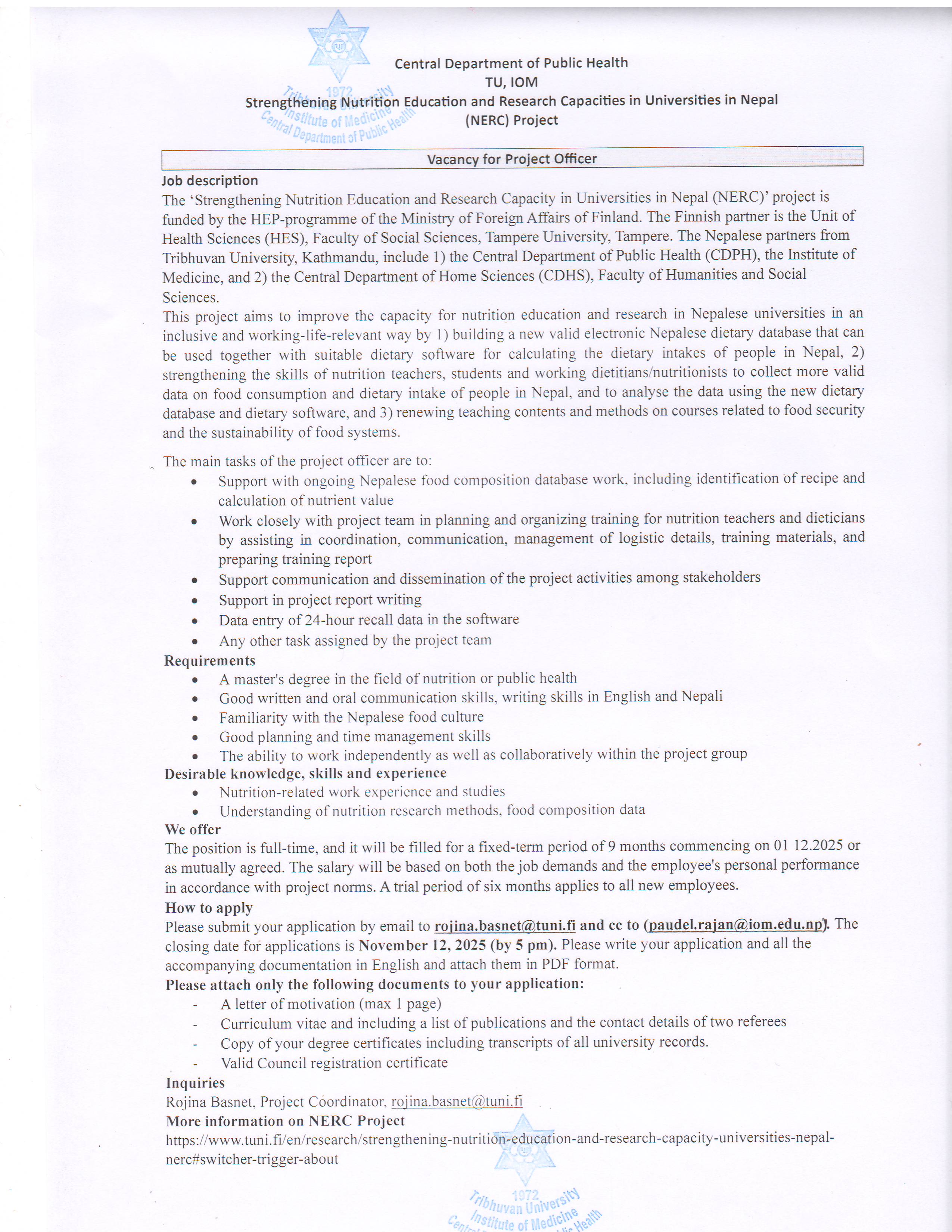 CDPH Vacancy Announcement for teachers and staff 2082-09-03