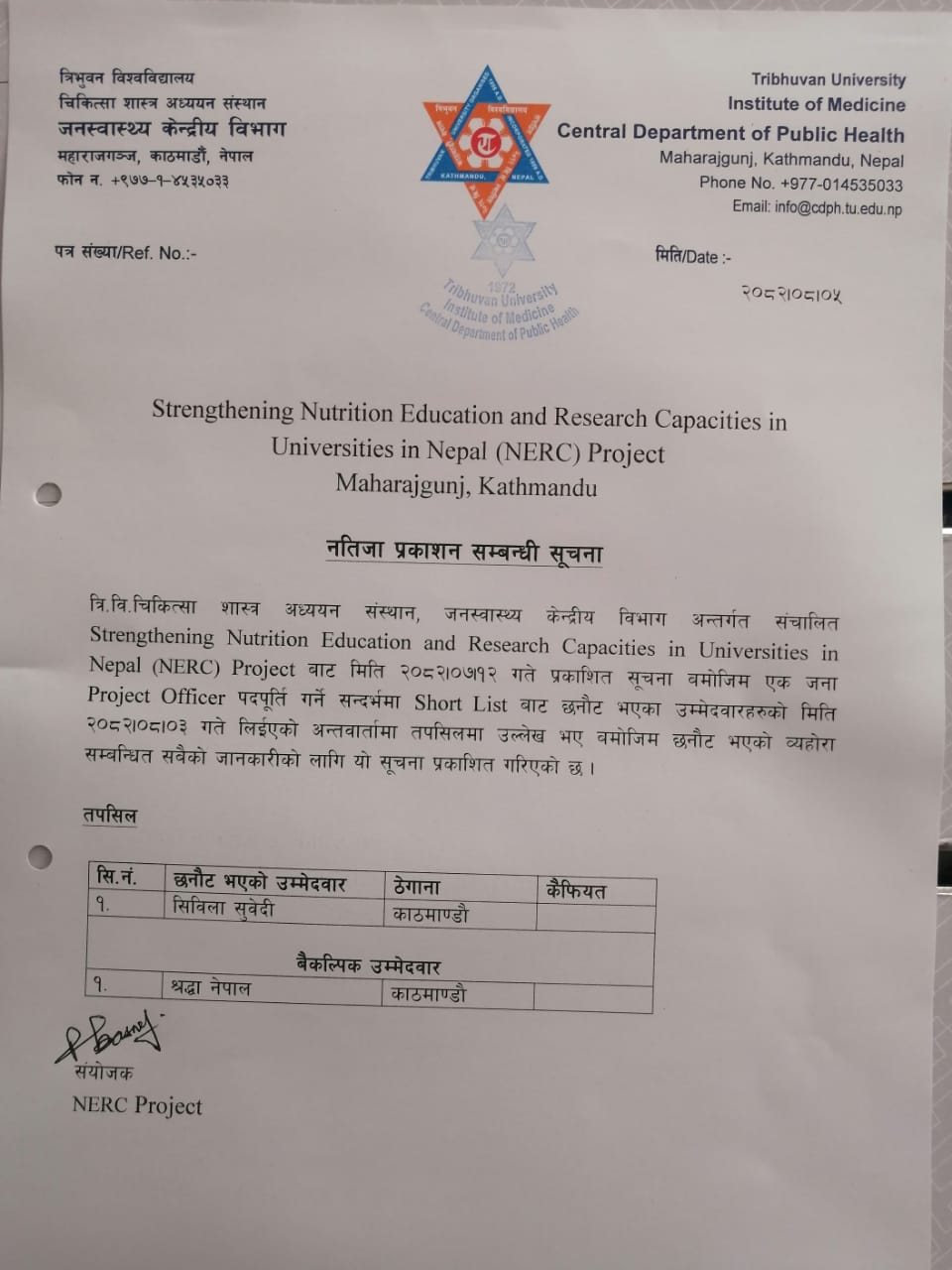 CDPH Vacancy application form 2082